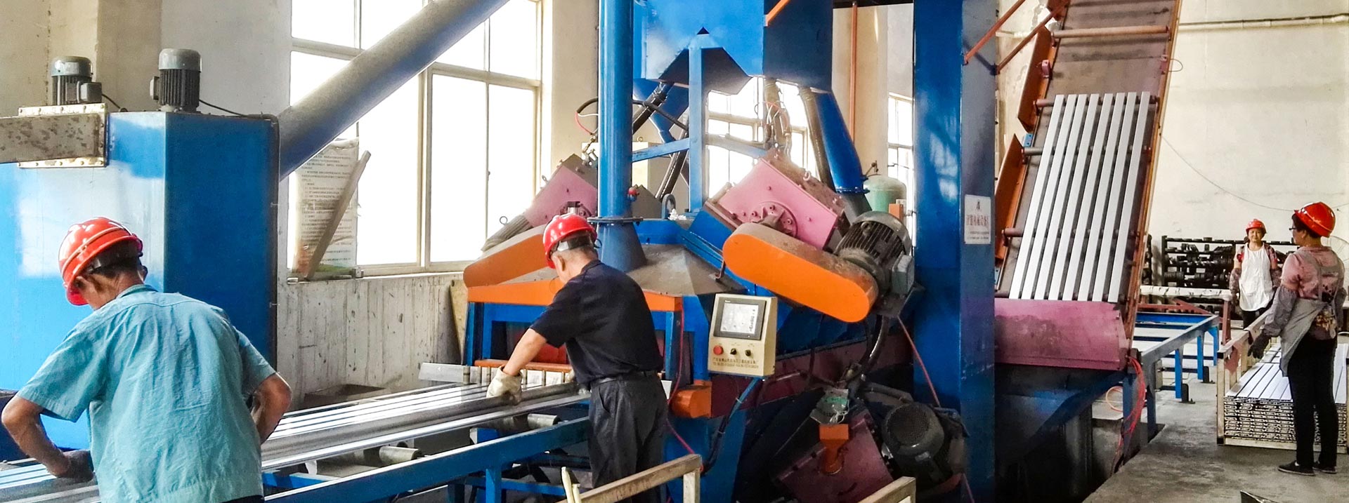 專業生產多種鋁合金型材及制品的企業,已有二十多年的經驗和歷史?,F有鋁型材擠壓設備四套,分別為1800T、1000T、630T、600T擠壓生產配套設備有10m長不銹拋丸機。6m鋁型材表面拋光機,4.5m普拉迪鋁材加工中心,多臺高精度自動切割機,雙頭轉向切割機,備有12m長時效爐。